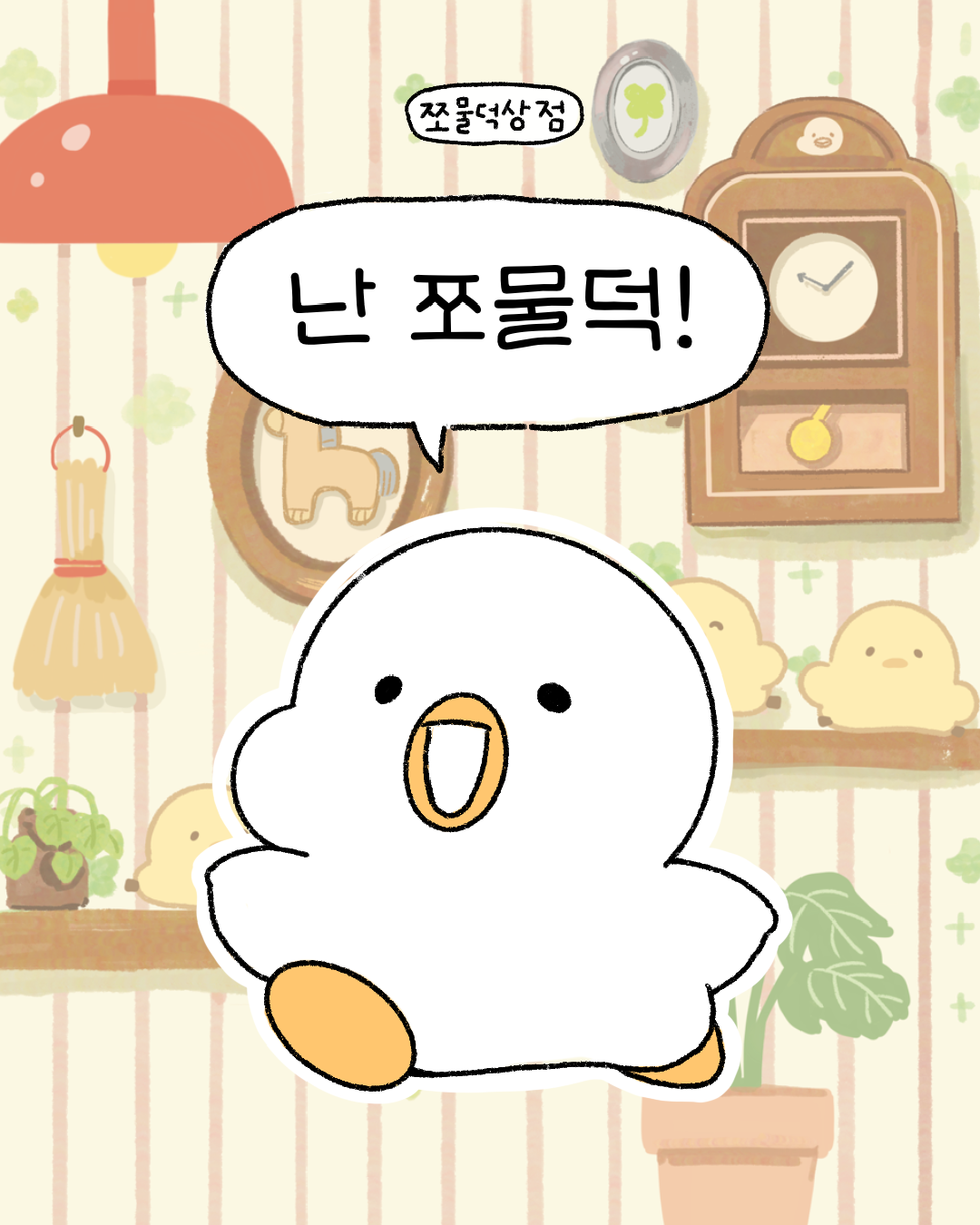 쪼물덕상점은 한국의 캐릭터로 쪼물쪼물 손으로 만든 오리가 만든 상점입니다.