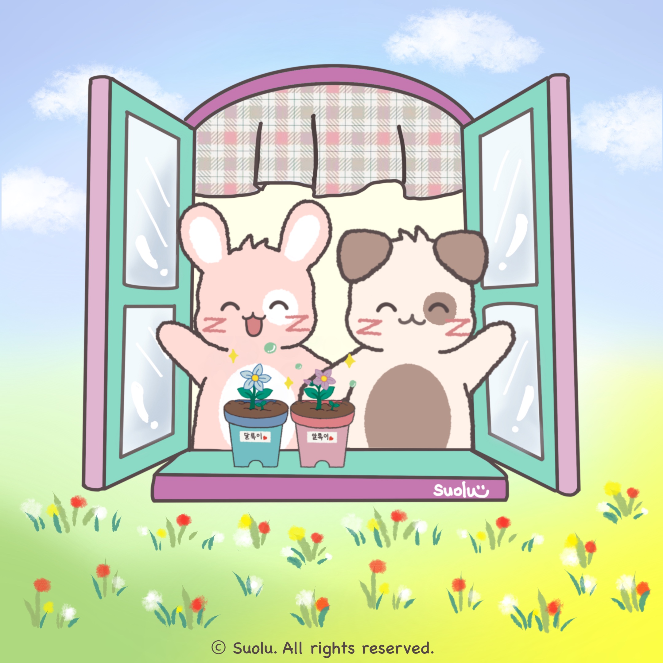 얼룩무늬 동물 친구들(알록이: 토끼 캐릭터, 달록이: 강아지 캐릭터)의 일상 이야기를 담고 있으며, 4컷 만화(인스타툰)를 통해 많은 사람들에게 긍정적인 응원과 위로를 전해주고 있습니다. 알록달록한 밝은 파스텔톤 색감에 귀여운 동물 캐릭터가 특징입니다. |