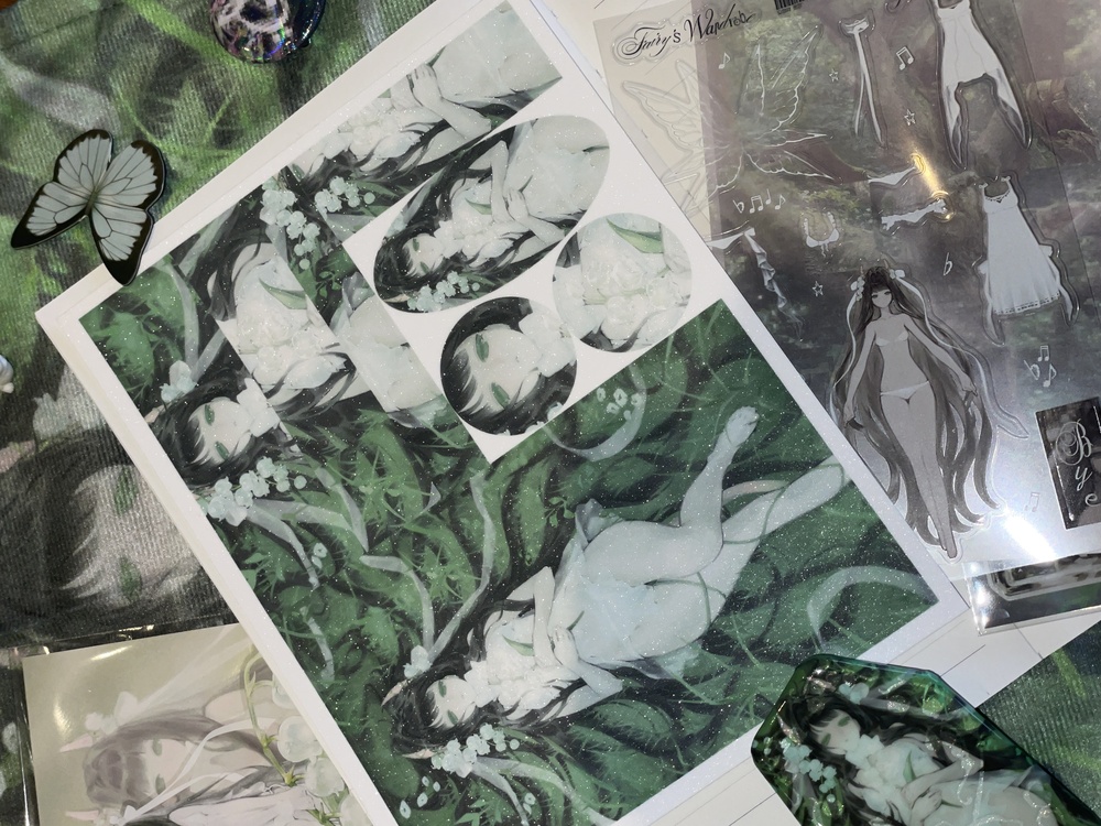 늪의대화_스티커 / 후애를 대표하는 일러스트 중 하나로 만든 일러스트 스티커. 늪의 요정에게 홀리고 결국 늪에 빠져버린 느낌을 받게한다.
