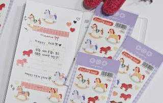 그 외 말띠 해를 맞이해서 말도 충분히 귀여울 수 있다는 점을 담고 싶었던 파스텔 톤의 모조지 스티커인 포니 모조지 씰스티커 시리즈, 각종 디저트와 냉장고 속 소스 같이 생활 속 귀여움을 담은 일러스트 마그넷까지! 귀여움 가득이죠? 😆💞