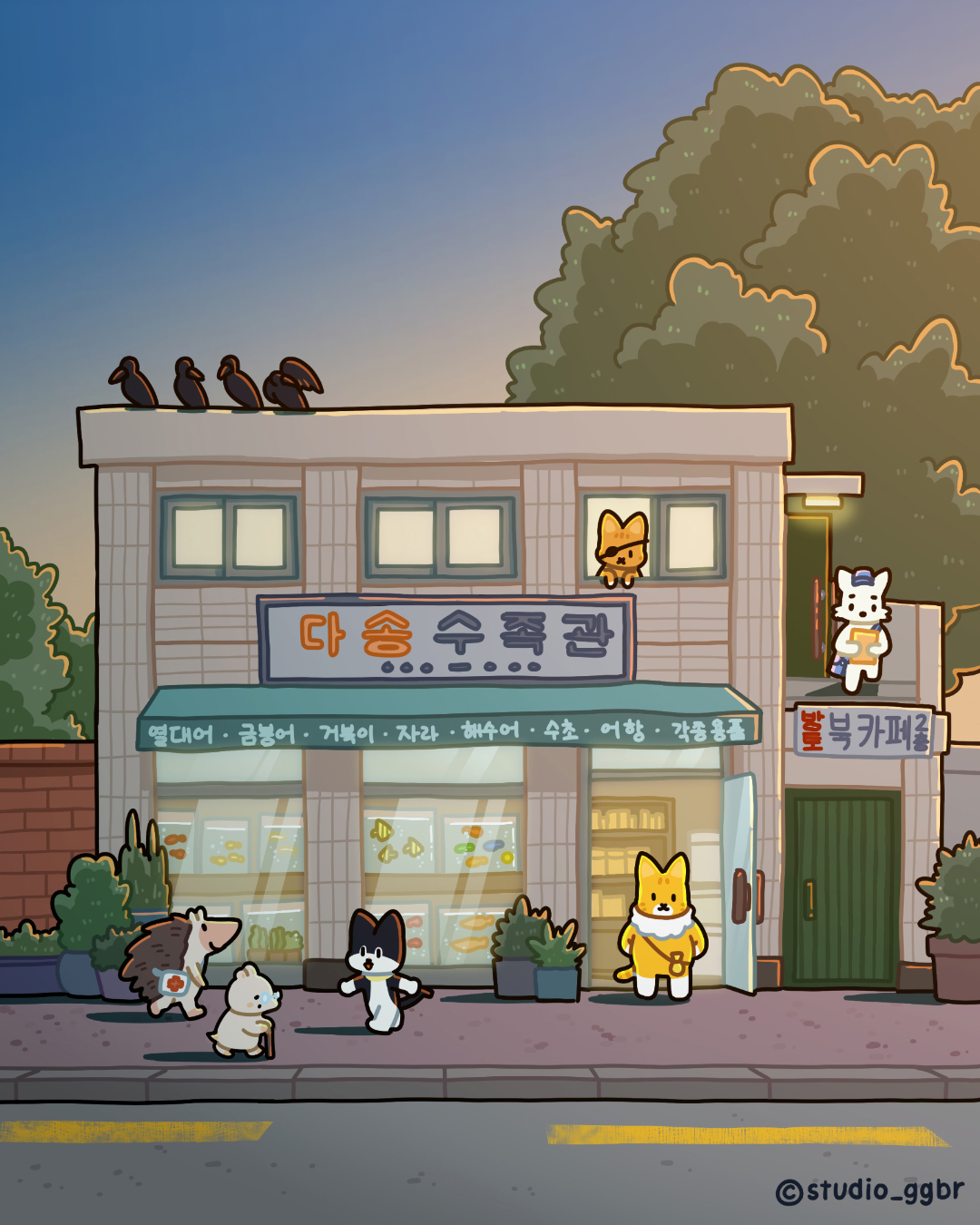 방토마을에 사는 세 마리의 고양이 깨옹, 리보, 두팡은 다송수족관이라는 작은 수족관을 운영하고 있습니다. 고양이에게 수족관을 맡겨도 괜찮은걸까요?