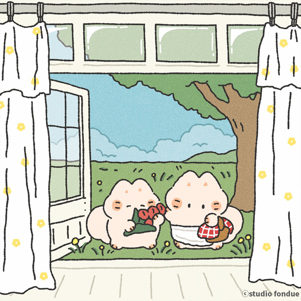 두 명의 친구가 함께 그리고 만듭니다. 대표 캐릭터로는 하얀고양이 '마요'가 있습니다.
