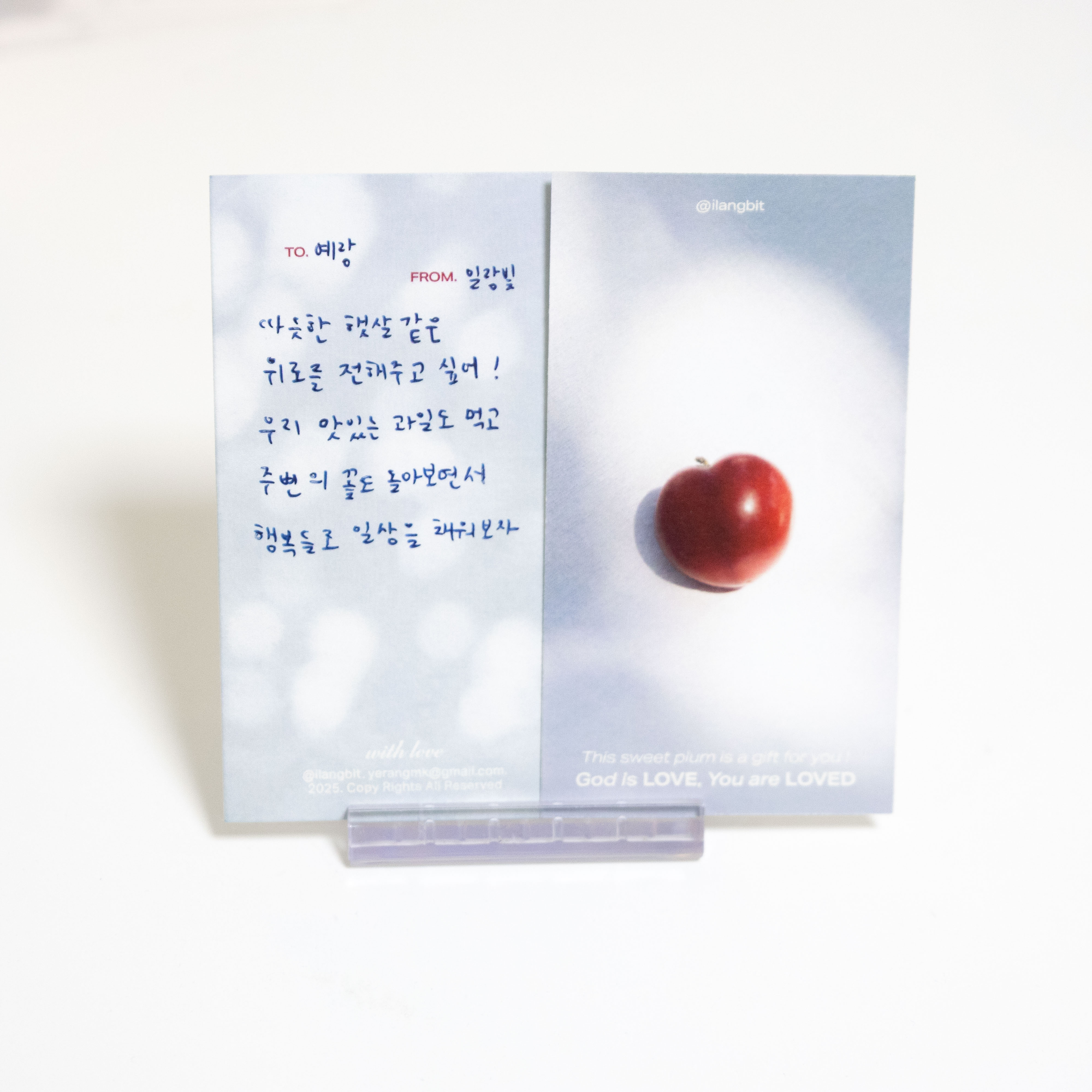 우리에게 사랑 가득히 선물 된 자연과 빛의 일상을 사진굿즈로 전달합니다. 반짝이는 윤슬, 계절마다 다르게 피는 꽃, 따스한 햇살같은 위로의 순간들을 전합니다.