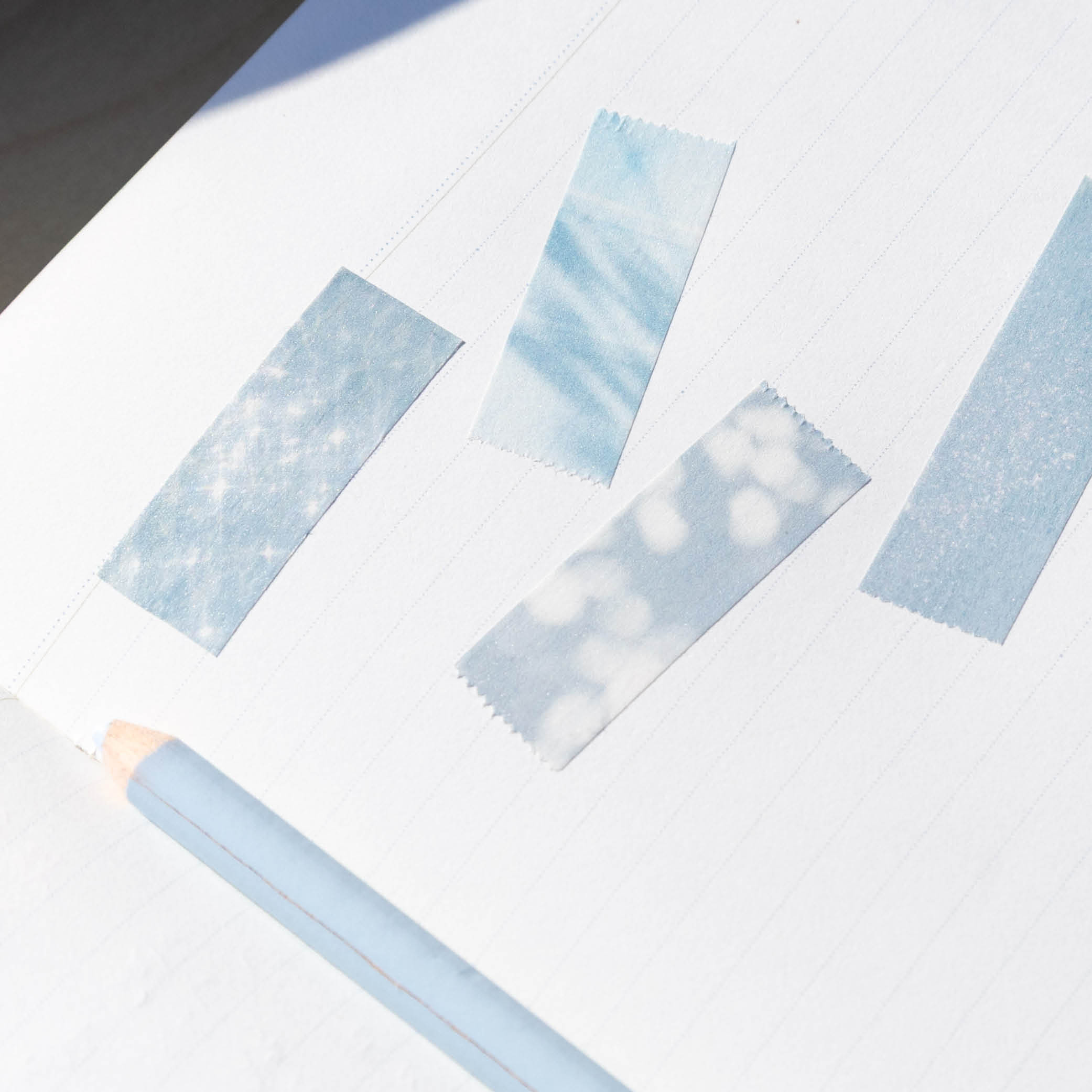 찬란한 빛 마스킹테이프, 자연의 푸른 그림자와 빛들의 4가지 모양을 담아 만들었습니다. 나뭇잎의 볕위, 잔잔한 호수의 물결들이 주는 잔잔한 위로를