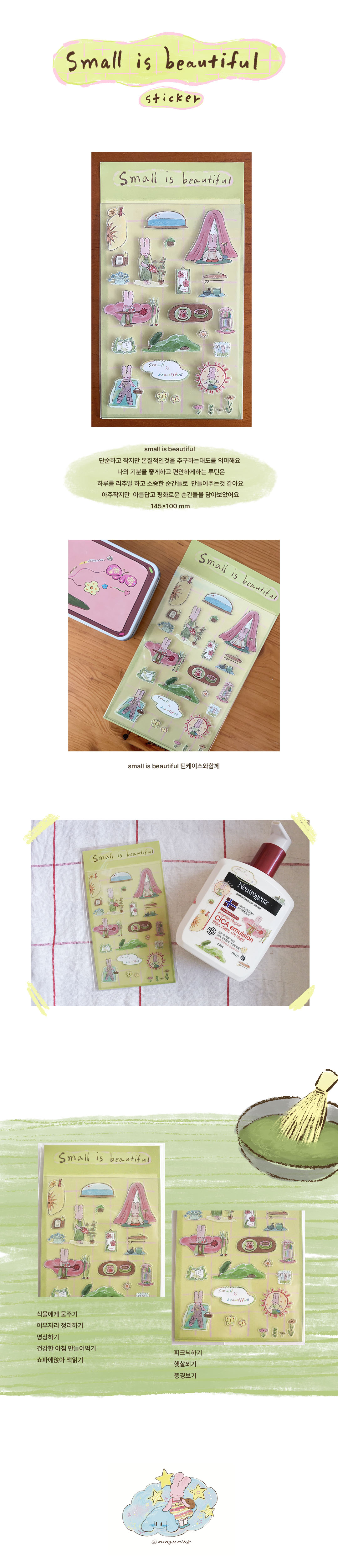 몽글이의 small is beautiful 스티커 입니다 리추얼한 하루를 담아보았어요