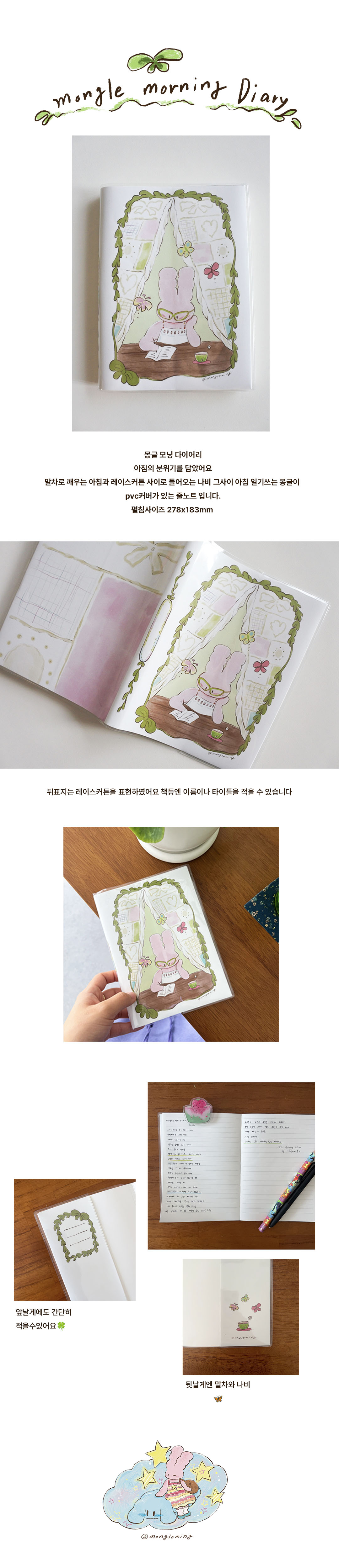 몽글 모닝 줄노트입니다 아침의 편안한 분위기를담았어요