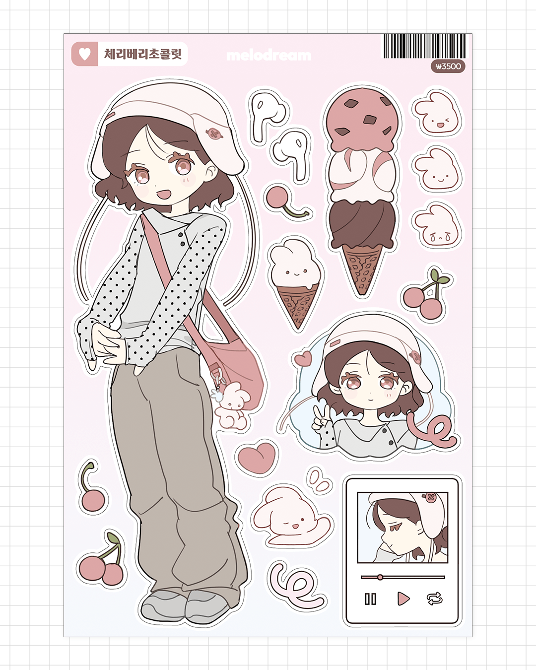 체리베리초콜릿 스티커(유포지/무광/리무버블/100*148mm)