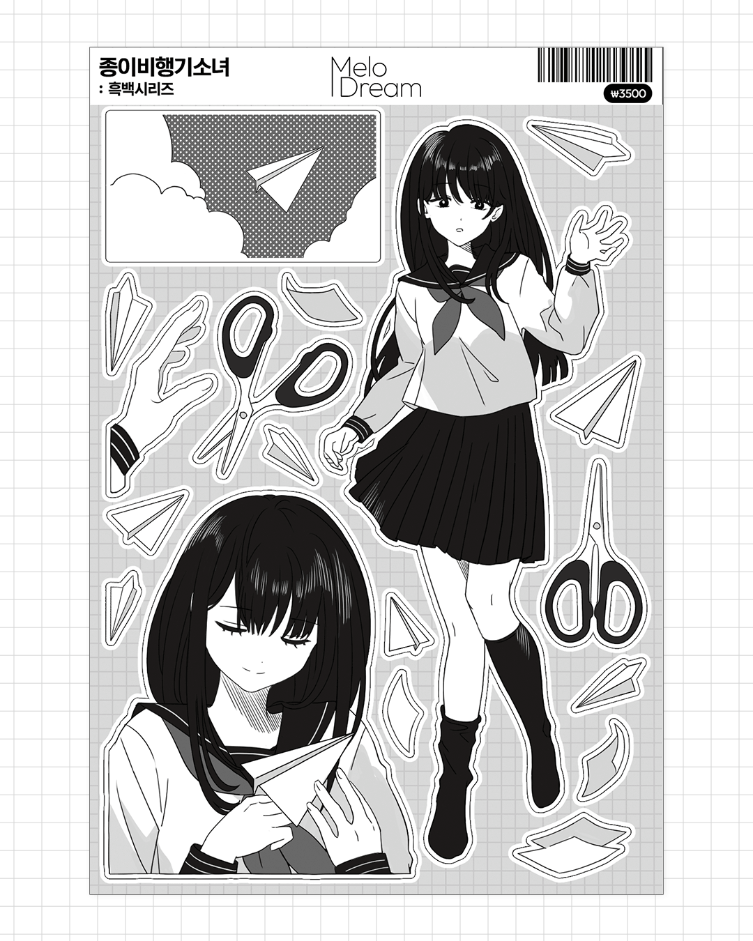 종이비행기소녀 스티커(유포지/무광/리무버블/100*148mm)