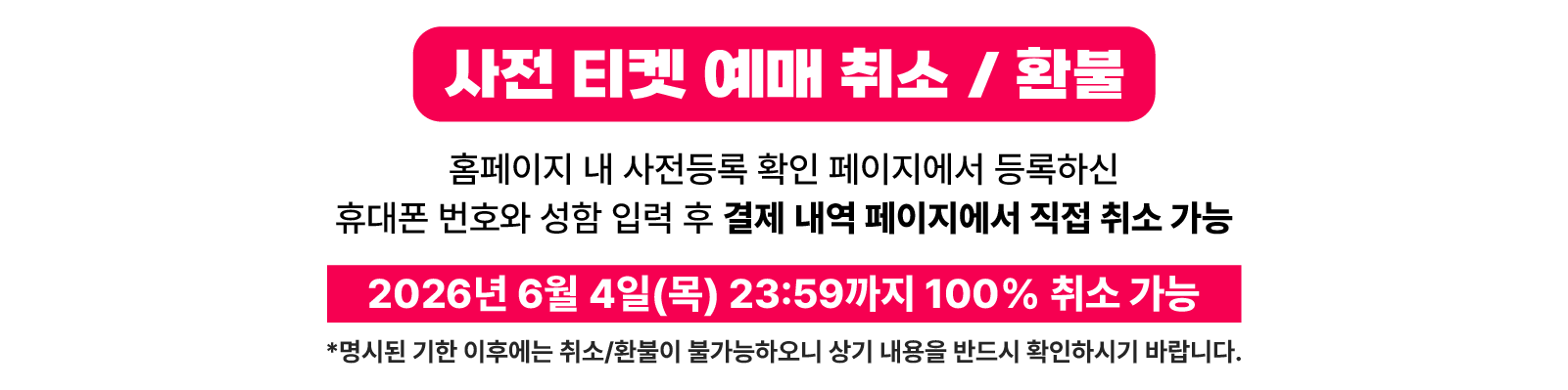 | 사전 티켓 예매 | 사전등록 후 사전결제가 | ~ 6월 4일(목) | 5,000원 | 사전등록 후 결제 완료자 |